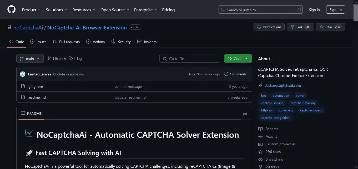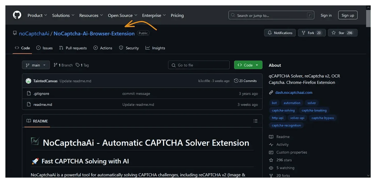 1. Visit the NoCaptcha AI Chrome Extension GitHub page: