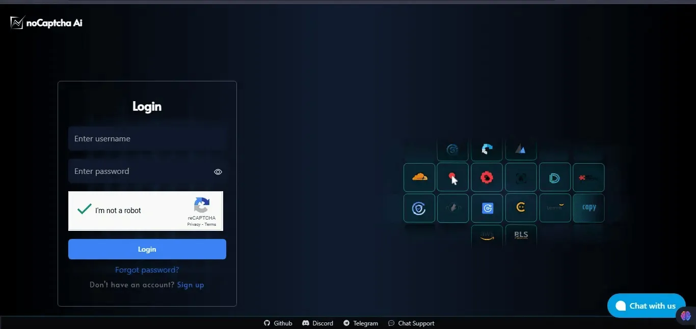 Visit the NoCaptcha AI Dashboard then tap on Sign up to create your account for free.